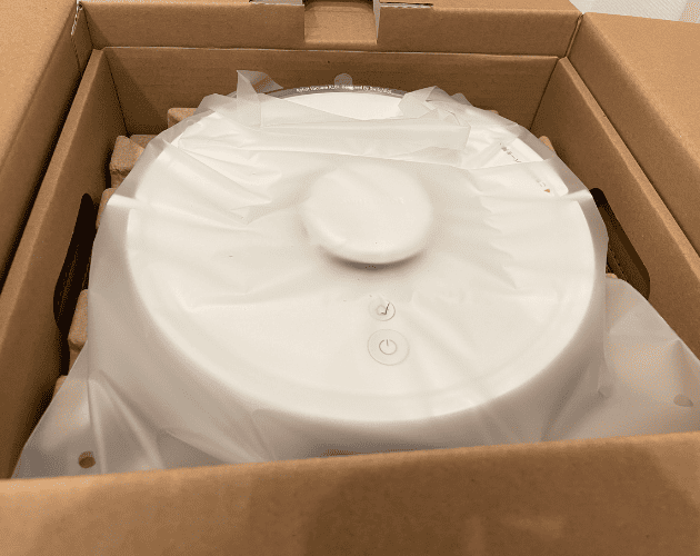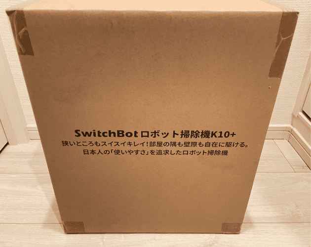 ロボット掃除機 K10+が届いた時はこんな感じです!ダンボールに製品のキャッチフレーズ?みたいなのが印刷されています!結構大きめ&重量あります!