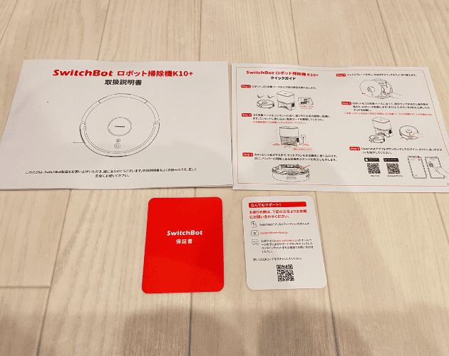 取扱説明書とクイックガイドと保証書とサポート用紙が入っていました!