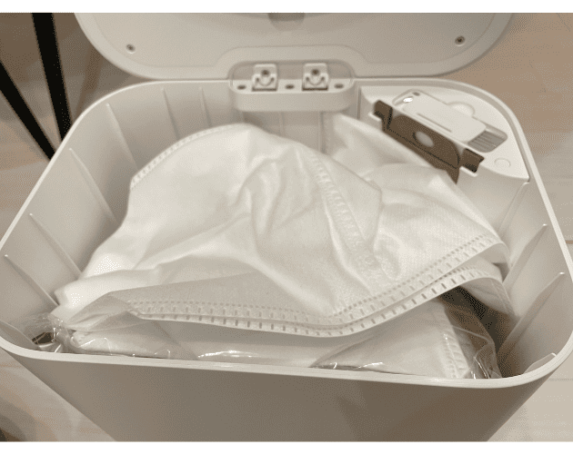 ゴミ収集ベースの上部開けると使い捨てお掃除シートや予備の部品が入っています!